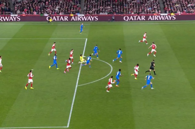 Një ndeshje që ndër të tjera tashmë më parë ishte karakterizuar nga një tjetër episod i çuditshëm që kishte parë protagonist këtë herë portierin e Arsenal, Raya. Portieri është dukur të mbante topin në duar më gjatë se sa duhej duke dalë madje nga zona e tij e rreptësisë me topin përpara se t’ua jepte shokëve të skuadrës. Pamja është bërë menjëherë virale por askush mes arbitrit dhe asistentit nuk e ka sinjalizuar apo ndalur lojën për të ndëshkuar portierin.