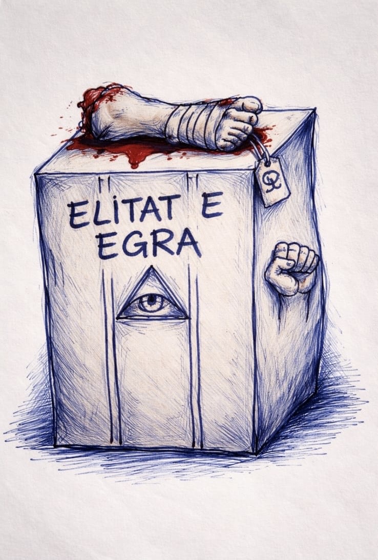 This figure encapsulates what is happening both globally and in Albania in different forms but with the same essence: the elites have lost their boundaries. It symbolizes a reality where the individual and the broader society become objects of manipulation, where freedom, dignity, and justice become lost elements. The image of the severed leg is a visual mirror of the lost connection between power and responsibility, between capital and ethics, between the elite and the ordinary citizen.