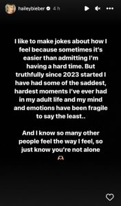 Hailey Bieber ka zbuluar se ajo është përballur me “disa nga momentet më të trishtuara, më të vështira që nga fillimi i vitit 2023.