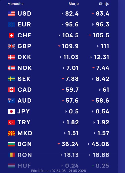Këmbimi valutor 21 mars, me sa shiten dhe blihen sot monedhat e huaja