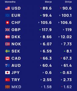 Këtë të premte, në tregun e këmbimit valutor shqiptar, euro do blihet me 99.4 lekë dhe do shitet me 100.1 lekë, ndërsa një dollar do blihet me 89.6 lekë dhe do shitet me 90.6 lekë.