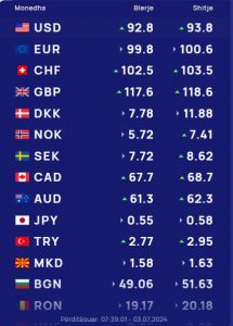 Franga zvicerane do blihet me 102.5 lekë dhe do shitet me 103.5 lekë, ndërsa paundi britanik do blihet me 117.6 lekë dhe do shitet me 118.6 lekë.