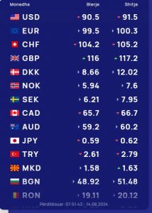 Franga zvicerane do blihet me 104.2 lekë dhe do shitet me 105.3 lekë, ndërsa paundi britanik do blihet me 116 lekë dhe do shitet me 117.2 lekë.
