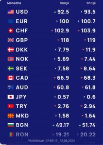 Franga zvicerane do blihet me 102.9 lekë dhe do shitet me 103.9 lekë, ndërsa paundi britanik do blihet me 118 lekë dhe do shitet me 119 lekë.
